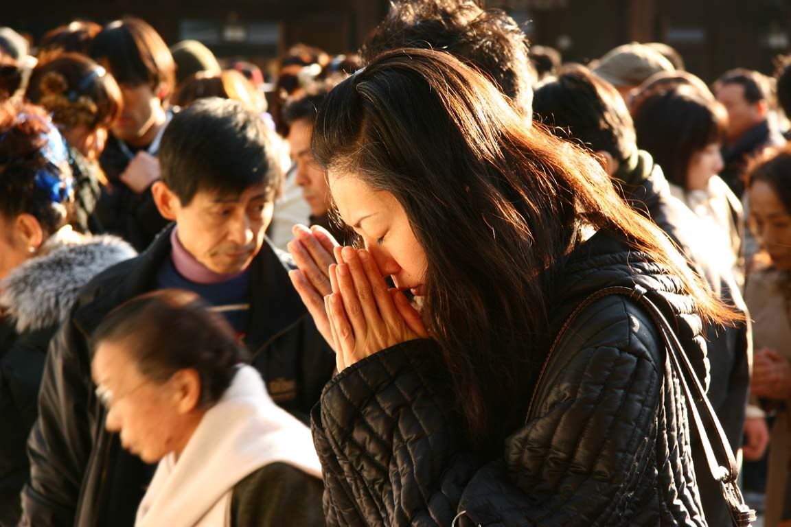 A couple of days later, just before the Tokyo stock exchange opened, the Shrine to the god of business was the place to be.